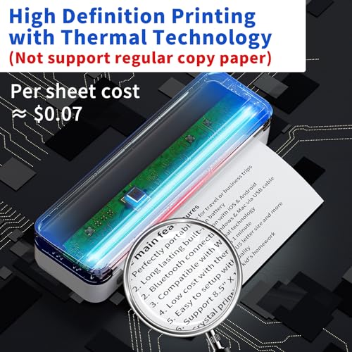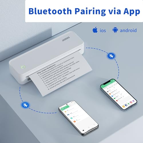 JADENS Portable Drucker, A4 Thermodrucker, Bluetooth Mobile Tragbarer Drucker A4, Wireless No-Ink Reisedrucker, kompatibel mit Android und iOS für Unterwegs & Laptop