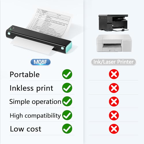 | Features | Überall drucken – Der tragbare PhoFuta M08F-Drucker ist so kompakt wie eine 750ml-Wasserflasche und passt problemlos in Ihren Rucksack, um verlorene Belege, Verträge und Dokumente im Notfall zu drucken, Verbesserte Bildgebungsmethode – Dank verbesserter Algorithmen bietet dieser Wärmedrucker eine bessere Bildklarheit und schnellere Druckgeschwindigkeit. Das neue schnell trocknende Wärmepapier reduziert die Wartungskosten und hat eine Haltbarkeit von bis zu 10 Jahren, Einfache Verbindung – Entdecken Sie die Flexibilität des kabellosen M08F-Bluetooth-Druckers. Verbinden Sie ohne Verzögerung mit Mobilgeräten und steigern Sie die Druckleistung. Bei Desktop-Geräten ist eine USB-Verbindung einfach möglich, Benutzerfreundliche Bedienung – Der M08F-Drucker ist intuitiv zu bedienen, auch für Anfänger. Verbinden Sie über Bluetooth, bearbeiten Sie den Inhalt in der App und drucken Sie in HD-Qualität, Unverzichtbares Reisebegleiter – Mit einer 1200mAh-Batterie unterstützt der M08F bis zu 140 ununterbrochene Drucke, äquivalent zu 16-20 Stunden. Reisen Sie geschäftlich oder privat, dokumentieren Sie Ihre Erlebnisse ohne räumliche Beschränkungen, Notfall-Drucklösung – Der M08F ist die ideale Lösung für dringende Druckbedürfnisse, selbst kurz vor der Flugabfahrt, Tinte nicht erforderlich – Der M08F bietet saubere, tintenfreie Druckergebnisse ohne Blockaden oder Reinigungsprobleme. Wärmepapier wechseln, 13 Euro pro Blatt – kosteneffizienter als herkömmliche Tintenpatronen und Papier, Kompatible Treibersoftware – Der kabellose tragbare Drucker ist kompatibel mit iOS, Android und Computern. Er schließt sich über USB an und ist mit Windows, Mac, Linux und Chrome OS nahtlos verwendbar, Kompakter Design – So klein, dass es kaum Beachtung findet. Der M08F ist nur 10% der Größe eines herkömmlichen Kartuschendruckers, was ihn leicht transportierbar macht, Umfangreicher technischer Support – Bei Fragen oder Unzufriedenheit steht Ihnen unser professioneller Kundenservice von Montag bis Sonntag von 6:00 bis 18:00 Uhr zur Verfügung. Jede Einheit wird mit Bedienungsanleitungen, Adapterkabeln und 10 Blättern Wärmepapier geliefert, um Ihre Zufriedenheit zu gewährleisten |