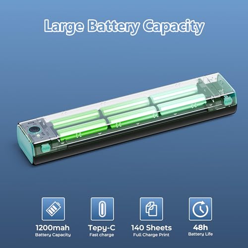 Mit einer Akkulaufzeit von bis zu 16-20 Stunden ist der tragbare Drucker für längere Einsätze bestens gerüstet. Er ermöglicht bis zu 140 ununterbrochene Druckvorgänge, was bedeutet, dass du keine Angst haben musst, während entscheidender Momente ohne Energie dazustehen.