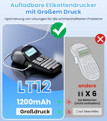 Zusätzlich ermöglicht die maximale Druckhöhe von 9 mm, dass deine Etiketten auch optisch ansprechend sind und die gedruckten Inhalte hervorstechen. Diese Eigenschaften machen das LT12 zu einem leistungsstarken Werkzeug für vielfältige Beschriftungsprojekte.