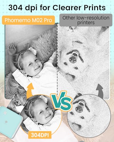 Phomemo Mini Drucker, Tiny Printer M02 Pro 300 DPI Mini Drucker für Smartphone Kleiner Thermo-Fotodrucker Aufkleber Drucker Mini Etikettendrucker für Lernen, Studiennotizen, Fotos, Etiketten,Geschenk