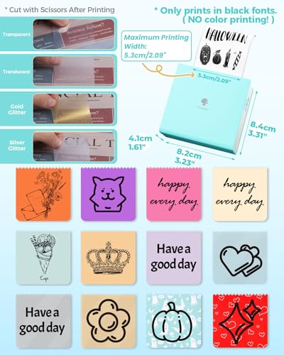 | Features | Drahtloser Bluetooth Thermodrucker: für Android 4.0 und iOS 8.0 oder höher. Phomemo M02 Taschendrucker ohne Toner oder Farbband, nur Schwarzweißdruck. Spezialpapier kann blau gedruckt werden. Und kann transparentes Papier drucken, Tragbare Größe und Modedesign: Taschendrucker einfache, elegante Form, Mini Größe (3,3×3,2×1,6 Zoll) passt perfekt in Ihre Tasche. Eingebauter mit dem Sie ihn überall hin mitnehmen können. Die volle Ladung hat eine Standby Zeit von 1 Woche. Es ist ideal für Halloween, Erntedankfest, Weihnachten und Weihnachtsgeschenk für Kinder, Familienmitglieder und Freunde, Pocket Mobile: Drucker mit leistungsstarkem APP 1 Klick Druck, der Zeit und Mühe spart. Phomemo M02 kann Fotos und Text sofort drucken. Die Phomemo App bietet eine Vielzahl von Schriftarten, Filtereffekten und Themen und macht Ihr Schwarzweißbild HD fähiger. Der Phomemo M02 Minidrucker ist ein lustiger Drucker, aber keine Kamera, Der tragbare mobile Mehrzweckdrucker Phomemo M02 eignet sich besser für Unternehmen, Arbeitspläne, Büroassistenten, Memos, Besprechungsnotizen, Studiennotizen und Einkaufslisten. Geeignet für Büro, Studenten, Amateurarchivare, Schatzmütter usw, Geeignet für täglichen Spaß und Bildung: Schüler können damit Lehrbuchprüfungsinhalte drucken, Eltern können Bilder drucken oder mit Kindern basteln, es ist auch eine unverzichtbare Ausrüstung für Handwerksliebhaber. Phomemo M02 Sofortdrucker, zeugen Sie von Ihrer Familienfreundschaft und Liebe. For Christmas |