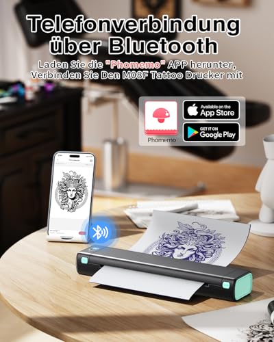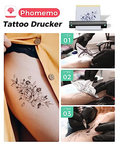 Phomemo M08F Tattoo Drucker Tattoo Stencil Drucker Maschine Tattoo Transfer Drucker Professionelle Thermodrucker Tattoo Kompatibel mit Smartphone und PC mit 10pcs Transferpapier