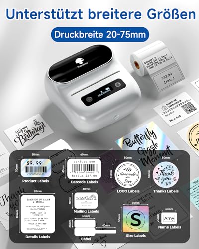 - Neu aufgerüsteter intelligenter Bluetooth-Etikettendrucker mit einer Druckgröße von 20-75 mm.