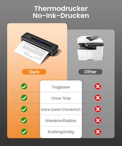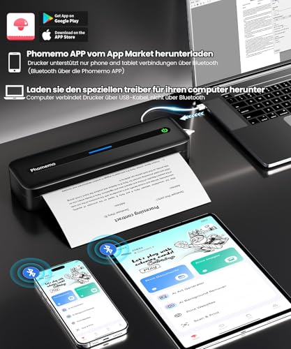 | Features | Phomemo M832 Mobiler Drucker Kit: 1 M832 tragbarer drucker, mit einem gewicht von nur 700 gramm, 1 tragetasche, 4 rollen thermopapier (53, 80, 110, 210 mm breit). Der M832 reisedrucker verfügt über einen eingebauten 2600mAh-Akku, der es Ihnen ermöglicht, auch fernab von einer steckdose zu drucken, egal ob sie auf geschäftsreise sind, zur schule gehen, im auto fahren oder in einem anderen mobilen szenario. (210 mm breites thermopapier wird im eingebauten fach des drucker aufbewahrt), 5 Druckgrößen: Der M832 thermodrucker hat ein herausnehmbares kartenfach und druckt auf 216mm/210mm/110mm/80mm/53mm breitem thermopapier. Er kann quittungen, verträge, foto, bilder, tagebücher, DIY, grußkarten, studiennotizen, kleine notizen, lange banner, to-do-listen und vieles mehr drucken, was ihn zu einer großartigen ergänzung für ihr arbeitszimmer und büro macht. (Bitte beachten sie: Der druck ist nur auf thermopapier möglich), 300dpi: Der M832 mobiler drucker a4 für unterwegs hat eine auflösung von 300 dpi, was der 1,5-fachen anzahl von punkten pro zoll eines druckers mit 203 dpi entspricht, und verwendet hochwertiges thermopapier für einen optimalen On-the-Fly-Druck, ideal für anwendungen, die eine höhere druckqualität erfordern, beispiele hierfür sind der druck von hochauflösenden bildern, detaillierten grafischen entwürfen oder dokumenten, die präzise details erfordern, No-Ink: Unsere M832 mobiler drucker verwenden thermodrucktechnologie und jeder drucker wird mit einer eigenen rolle a4 thermopapier geliefert, es werden keine teuren tinten, toner und farbbänder benötigt, es gibt keine verstopfungen und keine reinigungsprobleme, und es ist wirtschaftlicher, da die kosten für thermopapier nur 0,17 Euro pro blatt betragen. (Warmer Hinweis: nur Schwarzweißdruck wird unterstützt), Hohe Kompatibilität: Der M832 reisedrucker ist kompatibel mit Android- und iOS-mobiltelefonen (Verbindung über bluetooth und bedienung über die phomemo-App) sowie Windows- und MacOS-computern (Verbindung nur über usb-kabel, herunterladen und installieren von treibern) und unterstützt eine breite palette von druckformaten wie Word, Excel, PDF, TXT, JPG, webinhalte und grafiken, Mini Drucker: Der Phomemo M832 tragbarer drucker wiegt 700 Gramm und hat die größe von zwei mobiltelefonen, so dass er leicht in einem rucksack oder einer aktentasche mitgeführt werden kann. Eingebauter 2600mAh-Akku ermöglicht das drucken auch fernab von steckdosen, ganz gleich, ob sie geschäftlich, schulisch, privat oder anderweitig mobil unterwegs sind, ihre druckanforderungen werden problemlos erfüllt |