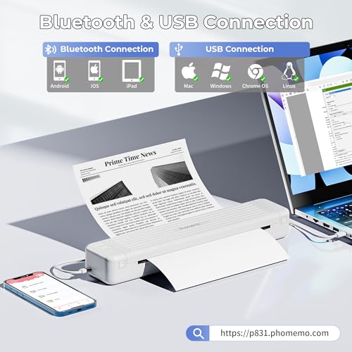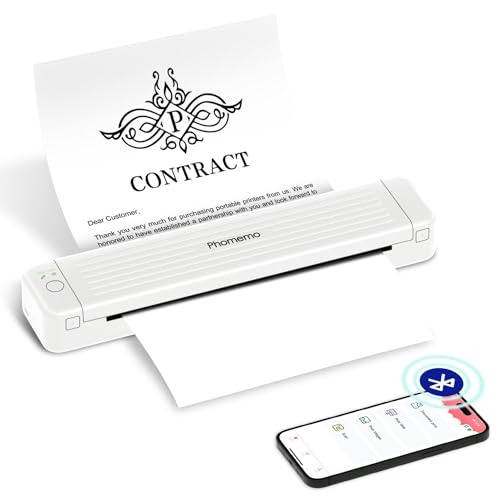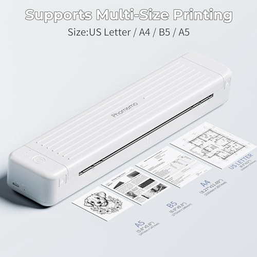 Phomemo P831 Mobiler Drucker A4 für Unterwegs, 300 DPI Tragbare Drucker Kompatibel mit Handys und Computer, Monochromer Reisedrucker für Kleine Unternehmen, Autos, Verträge, Reisen, Weiß