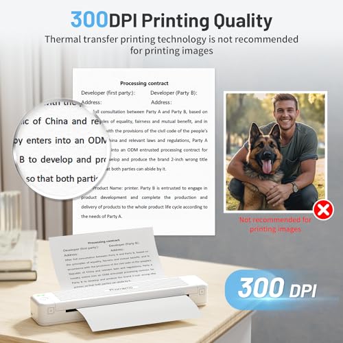 Der Phomemo P831 liefert mit seiner 300 DPI Auflösung beeindruckende Druckergebnisse. Texte und Grafiken sind klar und präzise, was ihn perfekt für die Erstellung von Dokumenten, Verträgen oder Etiketten macht. Beachte jedoch, dass der Drucker nicht für farbige Bilder gedacht ist, insbesondere für Fotos von Gesichtern oder Tieren.