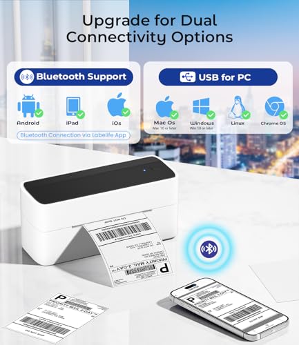 Der Drucker ist äußerst benutzerfreundlich konzipiert. Die Verbindung zu Smartphones und PC erfolgt schnell und unkompliziert über Bluetooth oder USB. Dank der „Labelife“-Software kannst du deine Etiketten leicht entwerfen und anpassen, was den gesamten Prozess stark vereinfacht.