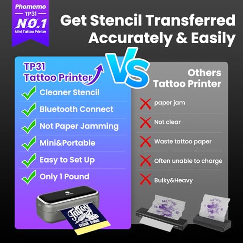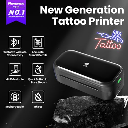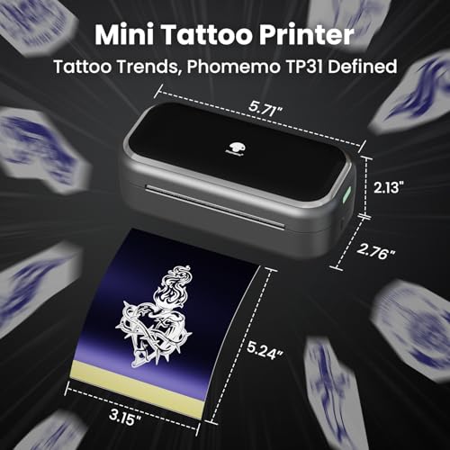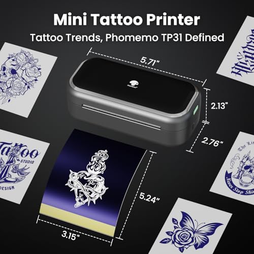 Phomemo TP31 Tattoo Drucker, Aufgerüstet Tragbarer Tattoo Stencil Drucker, Thermodrucker Tattoo Maschine mit 30pcs Transfer Papier, Mini Tattoo Drucker Bluetooth Kompatibel mit Smartphone und Tablet
