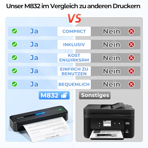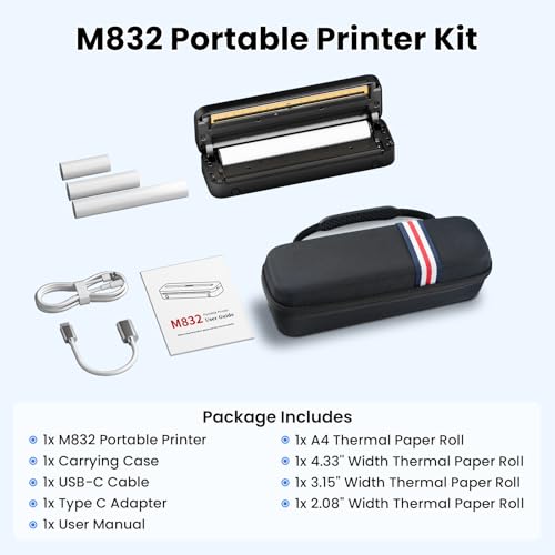 | Features | 【Neuste Serie M83 Thermodrucker A4 Kit】1 tragbarer drucker, mit einem gewicht von nur 680 gramm, 1 verbesserte tragetasche, 4 rollen thermopapier (53, 80, 110, 210 mm breit). Verbesserte Serie M83 Mobile Printer A4 übertrifft andere Thermodrucker mit 300dpi, kann Quittungen, Verträge, Fotos, Bilder, Tagebücher, DIY-Projekte, Grußkarten, Studiennotizen, kleine Notizen, To-Do-Listen und viele andere Größen und Inhalte besser drucken. Warme Tipps: unterstützt nur Schwarz-Weiß-Druck, 【Kompatibilität und Portabilität】Unser tragbarer Mini-Drucker A4 ist mit Smartphones und Laptops kompatibel, egal ob Sie ein iOS- oder Android-Gerät verwenden. Dank seines kleinen und kompakten Designs passt er problemlos in Ihre Aktentasche oder Computertasche, was ihn ideal für Reisen, das Büro, das Auto oder unterwegs macht. Sie können jederzeit und überall drahtlos drucken, ohne aufwendige Einrichtungen oder Wartezeiten( Unterstützt von der neuesten App-Version mit tausenden kostenlosen Vorlagen und Mustern, die direkt gedruckt werden können, steigert dieser Drucker die Arbeitsleistung. Er eignet sich daher perfekt für Büros, Schulen, Geschäftsreisen und privaten Gebrauch), 【Innovative Inkless Printing Technologie】Unser thermodrucker verwendet fortschrittliche Wärmebildtechnologie, die ohne Toner oder Tinte auskommt. Dadurch ist er wirtschaftlicher und umweltfreundlicher. Mit einer verbesserten Auflösung von 203DPI bis 300DPI liefert er klare Schriftarten und gestochen scharfe Grafiken für herausragende Druckergebnisse, perfekt für geschäftliche Anwendungen und tägliche Druckanforderungen, 【Vielseitiger Multisize-Druck】Unser thermodrucker a4 verfügt über eine verstellbare Papierführungsklammer, mit der Sie verschiedene Papiergrößen bedrucken können, einschließlich Rollen oder gefaltetes Thermopapier oder Thermoetiketten in Breiten von 216mm/210mm/110mm/80mm/53mm (US Letter/A4/4"/3"/2"). Von Dokumenten und Fotos bis hin zu Grußkarten und Adressetiketten – dieser Drucker erfüllt vielfältige Druckanforderungen. Mit einer Auflösung von 300 dpi druckt der Drucker auf hochwertigem Thermopapier für optimalen Sofortdruck, und dank des glatten, klaren Papiers müssen Sie sich nie wieder Gedanken über verschwommene Ausdrucke machen, 【Große Akku-Kapazität für unterwegs】Ausgestattet mit einem leistungsstarken 2600mAh-Akku kann unser tragbarer Drucker bei voller Aufladung bis zu 160 Blatt Thermopapier im A4-Format bedrucken. Ideal für Geschäftsreisen, im Auto, zu Hause oder als Lernbegleiter für Kinder – dieser Drucker bietet Ihnen die Freiheit, überall zu drucken, ohne sich Gedanken über die Batterielaufzeit machen zu müssen, 【Einfach einzurichten und zu verwenden】Unser Drucker ist besonders benutzerfreundlich. Installieren Sie einfach die App auf Ihrem Smartphone oder Tablet, um Dokumente oder Bilder mit einem Klick zu drucken. Sie können auch eine Verbindung zu Ihrem Computer über ein Typ-C-Kabel herstellen, das Windows, Mac OS, Chrome und Linux unterstützt. Mit lebenslanger technischer Unterstützung stehen wir Ihnen bei Fragen oder Problemen zur Seite, um sicherzustellen, dass Sie das Beste aus Ihrem Drucker herausholen können, 【Mehrfunktions Mobiler Drucker Warme Erinnerung】Der verbesserte Reisedrucker Serie M83 lädt sich mit 5V und 2A auf. Er ist kompatibel mit Android 7 oder höher, iOS 13 oder höher, Mac 10 oder höher, Windows 7 oder höher, Chrome und Linux. Der Thermodrucker ist ausschließlich für Thermopapier geeignet und nicht für Normalpapier (je höher die Qualität des Thermopapiers ist, desto schärfer ist der Druck) |