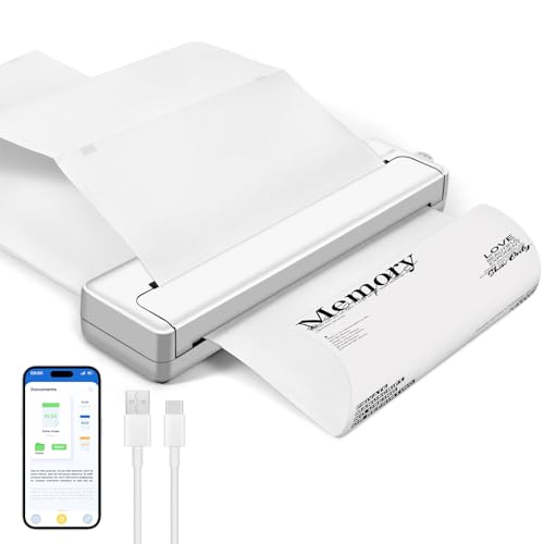 Mobiler Drucker – Bluetooth Tragbarer Drucker Portable Printer Reisedrucker für Laptop, Mobiler Drucker A4 für Unterwegs, Unterstützt A4 Thermopapier Tattoo Transfer Papier