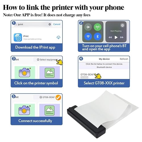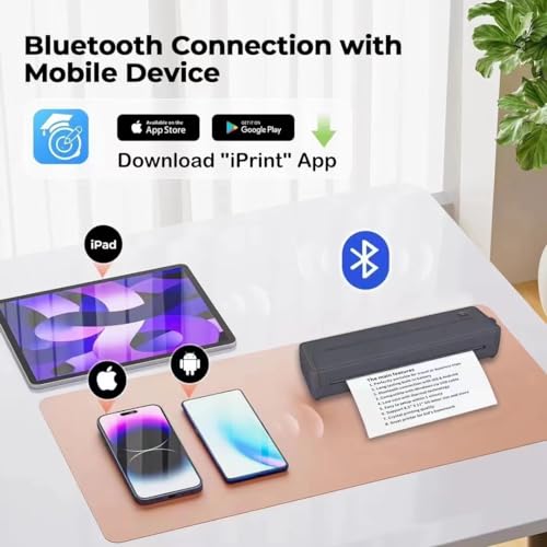 | Features | 【Neuer tragbarer A4-Drucker】Der kompakte Drucker ist mit Smartphones oder Laptops kompatibel, einschließlich iOS- und Android-Geräten; Drucken Sie überall und jederzeit drahtlos mit einem integrierten 1800-mA-Akku für Plug-and-Play-Nutzung ohne Wartezeit; Es hat ein kleines, kompaktes Design und wiegt nur 700 g, passt problemlos in eine Aktentasche oder Computertasche und ist somit ideal für Reisen, Auto, Büro, Pendeln und den Heimgebrauch., 【Flexible Verbindung】Dieser Drucker unterstützt sowohl drahtlose als auch kabelgebundene Verbindungen. Sie können es über BT mit Ihrem Mobilgerät verbinden und die „iPrint“-App verwenden, die im App Store (iOS) oder Google Play (Android) verfügbar ist. Zum Drucken kann er auch per USB-Kabel an einen PC oder Computer angeschlossen werden., 【Multifunktionsdrucker】Dieser Bluetooth-Drucker wird mit einer speziellen App geliefert, die eine große Sammlung von Vorlagen, Vorlagen und Materialien bereitstellt, sodass Sie Dateien, Bilder, Klebeetiketten, Listenlisten usw. bearbeiten und drucken können. Sie können alles drucken, was Sie brauchen . Es ist ein großartiges Werkzeug für Studium und Büroarbeit, es benötigt weder Tinte noch Farbband, ist wirtschaftlich und umweltfreundlich, 【Bereit für Anfänger】Dieser kabellose tragbare Drucker ist sehr einfach einzurichten. Installieren Sie einfach die App auf Ihrem Telefon oder Tablet, um Dokumente oder Bilder mit nur einem Klick zu drucken. Zum Drucken können Sie den Computer auch über ein Typ-C-Kabel anschließen, das Windows-, Mac OS- und Linux-Systeme unterstützt, 【Lebenslanger technischer Support】Thermopapierdrucke für A4-Drucker werden vor dem Versand strengen Tests unterzogen, um zuverlässige Kompatibilität und hervorragende Drucke mit 24 Monaten Garantie zu gewährleisten. Bitte seien Sie versichert, dass Sie sie verwenden können. Jedem mobilen A4-Drucker für unterwegs liegen 50 Test-Thermopapiere zur Verwendung bei. |