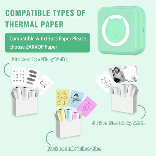Zakvop Mini Drucker 300DPI Tragbarer Fotodrucker Grün