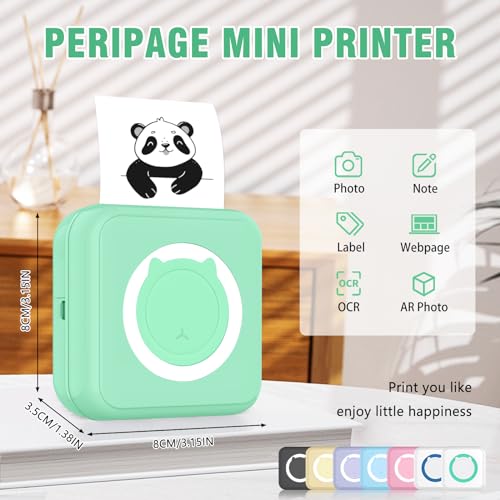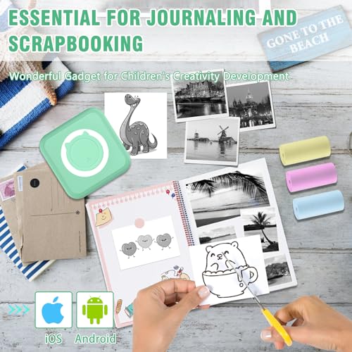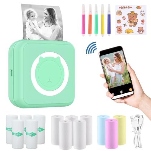 mini drucker für smartphone, fotodrucker für smartphone, mini drucker aufkleber, Bluetooth tragbarer thermodrucker für iOS und Android, mini drucker 300DPI für Journal, Notizen, Liste, Memo – Grün