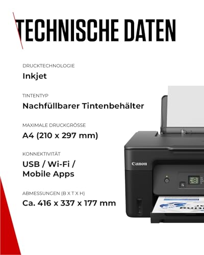 Der Canon PIXMA G2570 MegaTank ist ein vielseitiges Multifunktionsgerät, das sowohl Druck-, Scan- als auch Kopierfunktionen bietet. Mit dem nachfüllbaren Tintentanksystem eignet sich dieser Drucker besonders gut für Home-Offices und Vielnutzer, die Wert auf Kosteneffizienz und hohe Druckqualität legen. In dieser Bewertung betrachten wir die wichtigsten Eigenschaften und Kriterien, um dir eine fundierte Kaufentscheidung zu ermöglichen.