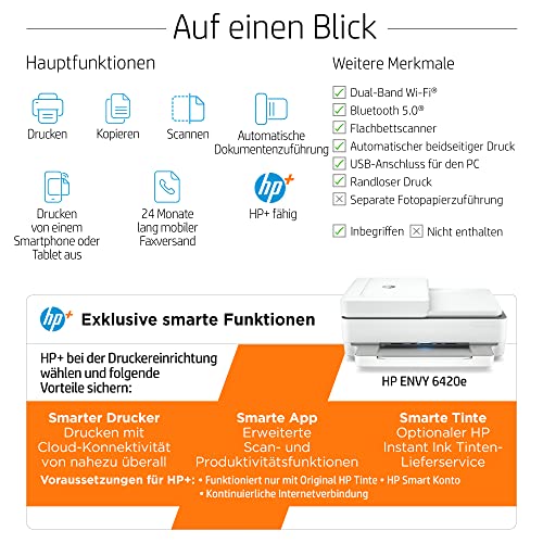 HP ENVY 6420e Multifunktionsdrucker, 3 Monate gratis drucken mit HP Instant Ink inklusive, HP+, Drucker, Kopierer, Scanner, Mobiler Faxversand, WLAN, Automatischer Dokumenteneinzug