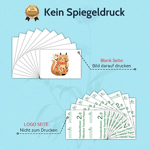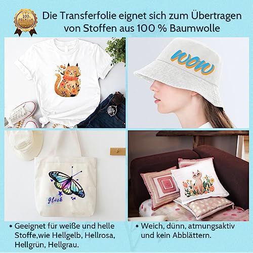 Das TransOurDream Transferpapier ist ein echtes Highlight für Bastler und Kreative, dieTextilien personalisieren möchten. Mit einer praktischen Packung von 20 Blatt und zwei wiederverwendbaren Silikonpapieren eröffnet es zahlreiche Möglichkeiten, Texte, Bilder und Designs auf Stoff aufzubringen. Besonders hervorzuheben ist, dass es sowohl mit Inkjet- als auch mit Laserdruckern funktioniert, was es sehr vielseitig macht.